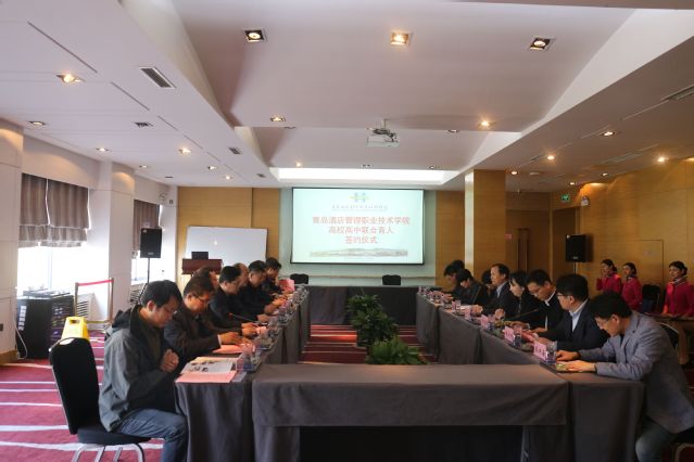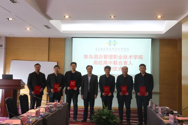研讨会上,王建宝向各位校长介绍了学院发展改革历史及专业建设发展情况;招生就业办公室主任冷雪艳介绍了学院招生就业工作情况和联合育人工作的基本构想;莱州六中和栖霞四中作为高中代表介绍了当地高中教学的基本情况。随后,王建宝代表学院与栖霞一中、栖霞二中、栖霞四中、莱州五中、莱州六中、莱州十三中等六所高中的代表签订了高校高中联合育人协议书,并向各位代表颁发了高校高中联合育人指导专家聘书。随后,各位与会代表参观了工商管理学院、旅游与酒店管理学院、烹饪学院等实训基地。