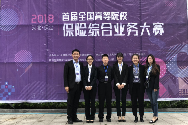 本网讯(工商管理学院 丁飞)近日,首届全国高等院校保险综合业务大赛在河北大学举行,我院选派4名金融管理专业选手参加大赛并喜获佳绩,宋毓诗荣获大赛一等奖,张赞和王美宇荣获大赛二等奖,冯宁荣获大赛三等奖。丁飞赵颖慧荣获“优秀指导教师”称号。