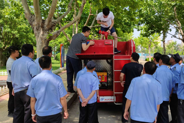 此次培训及演练活动采取现场培训演示与当场演练相结合的方式进行。澳柯玛特种车技术代表为全体人员进行微型消防车的使用讲解和操作示范,参训人员对消防装备逐一熟悉了解,每一位参训人员按照演示要求进行操作演习,并进行携带水带奔跑30米消防栓、消防车水泵连接操作、水炮灭火等内容的实操。
