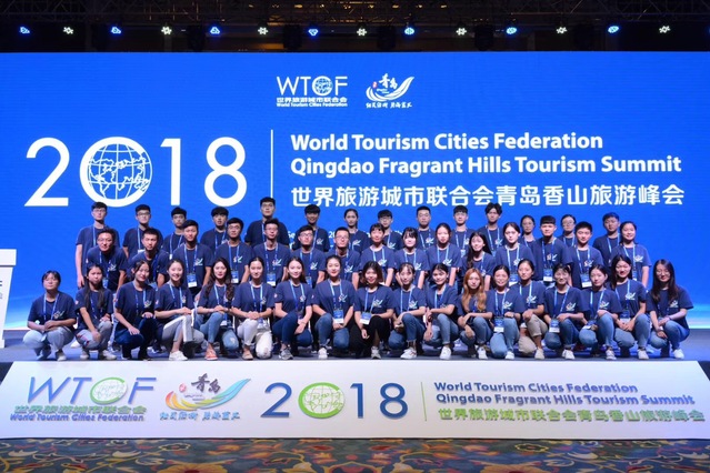 本网讯(旅游与酒店管理学院 星宇)9月7日9日2018世界旅游城市联合会青岛香山旅游峰会在青岛举办。旅游与酒店管理学院选派35“金海豚”志愿者开展志愿服务工作。