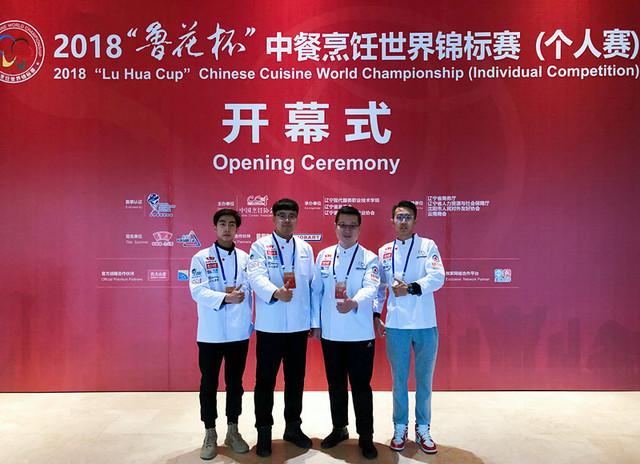 本网讯(烹饪学院 李文武)11月21日-24日,2018“鲁花杯”中餐烹饪世界锦标赛在沈阳市辽宁现代服务职业技术学院举行,我院教师殷东、丁德龙分别夺得中式冷菜项目第二名和果蔬雕刻项目优胜奖,两名学生郝永超和龙云翔获得青年组中式冷菜和果蔬雕刻项目的优胜奖。