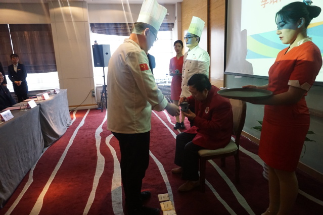 本网讯(烹饪学院 李文武)12月6日,李培雨大师收徒仪式在旅游与酒店管理学院实训中心举行,烹饪学院纪成、丁德龙向李培雨拜师,结成师徒关系,开启了行业和学院在师资培养上双融合、双育人的新篇章。学院党委副书记于敏、副院长宫恩龙,烹饪学院院长王建明、党总支书记石增业、副院长王志兴,烹饪学院部分教师和学生代表参加仪式。