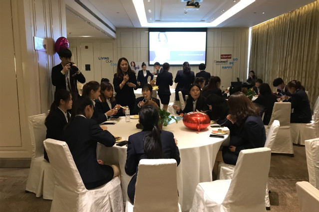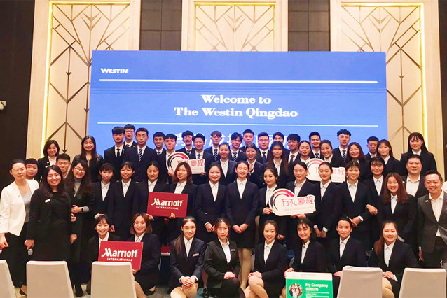 作为新生入学教育特色活动之一,酒店参观学习活动也得到了实习合作单位的高度重视和热情接待,每家酒店都安排了总监级的高管负责接待和宣讲展示活动。青岛海尔洲际酒店等4家酒店的总经理亲自参加欢迎见面会,为同学们介绍企业文化和酒店业发展前景,分享从业经历,受到同学们的热烈欢迎。青岛威斯汀酒店还为参观的师生安排了为期一天的“万礼豪程”主题活动,酒店部门总监及以上所有高管全程参与,与同学们互动交流、主题茶歇、参观访谈,使师生们深度领略了万豪品牌的魅力。