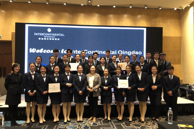 本网讯(旅游与酒店管理学院 李涛)近日,旅游与酒店管理学院分两批组织2018级酒店管理专业900名学生赴青岛鲁商凯悦酒店、青岛海景花园大酒店、青岛香格里拉大酒店、青岛海尔洲际酒店等岛城11家知名五星级酒店开展认知性酒店参观体验活动。