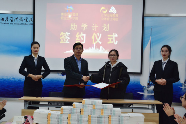 签约仪式上,会计专业负责人崔婧代表学院接受了正保远程教育集团提供的价值40余万元的1000余份网课和1200余册图书等学习资料。随后,正保远程教育线上校园市场总监张时赫为财会专业师生做了一场关于财会人职业生涯规划的讲座。