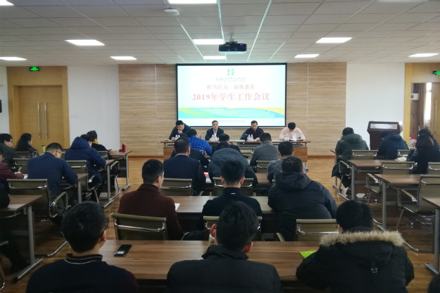 本网讯(学生工作处 孙毅)2月23日上午,2018-2019学年第二学期学院学生工作会议在行政楼四楼会议室召开,全面部署我院2019年学生工作。学院副院长刁洪斌出席会议,安全保卫处处长胡滨、团委书记李柯,各学院党总支书记、学工办主任、全体专职辅导员及相关工作人员参加会议。会议由学生工作处处长赵明富主持。