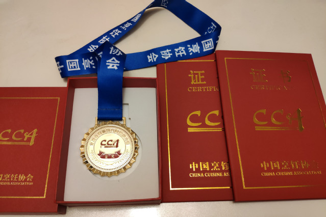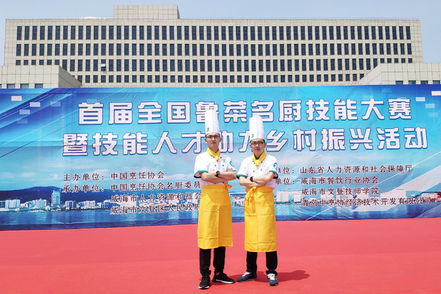 本网讯(烹饪学院张会强 纪成)5月15日,由中国烹饪协会等8个单位联合举办的首届“全国鲁菜名厨技能大赛”在山东威海落下帷幕,烹饪学院青年教师纪成获得中式烹调项目金奖和“最具推广价值奖”,王和涛获得中式烹调项目银奖。