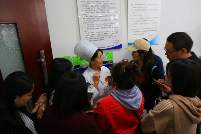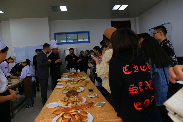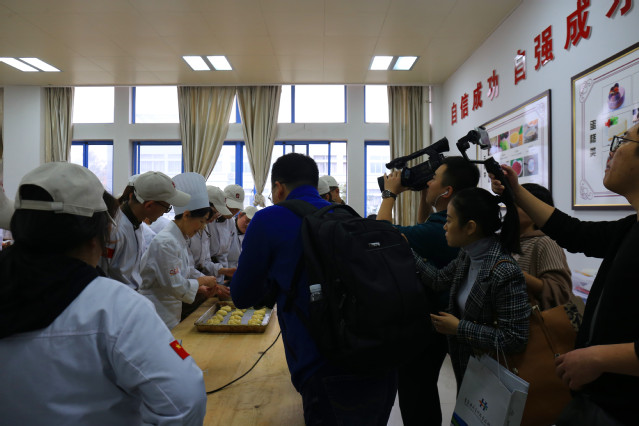 媒体一行走进旅游与酒店管理学院实训中心、烹饪学院、菜鸟驿站,感受学院办学特色,直接进入一线课堂和实训基地,了解学院职业技能教育情况,采访团饶有兴趣地观摩了学院茶艺、咖啡、调酒、宴会摆台、铺床、雕刻、中西面点、物流快递等实训和课堂教学情况。现场采访了部分教师代表,国际交流与合作处处长周莉、菜鸟驿站总经理秦炳海、酒店管理专业负责人尹萍博士,各路媒体更是你争我抢“围堵”采访中国烹饪大师王桂云,记者们意犹未尽,原定于三点十分结束的行程,直到四点才匆忙离去。