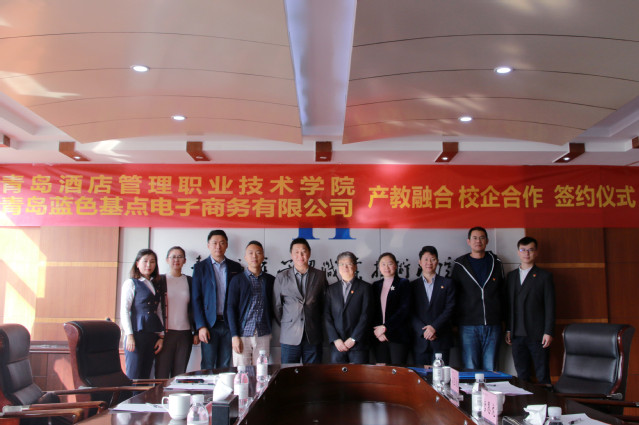 青岛蓝色基点电子商务有限公司副总经理张涛、内容创作部总监赵征、人事行政部经理王璇,信息工程技术学院党总支书记赵德银、办公室副主任涂振、电子商务专业负责人刘焱、电子商务专业全体教师和部分学生代表参加签约仪式。