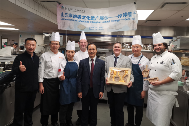 本网讯(国际交流与合作处 烹饪学院)12月3日至6日,学院副院长王建宝等一行5人前往加拿大魁北克旅游与酒店管理学院(ITHQ)进行访问交流。访问期间,代表团为加拿大师生进行了中国烹饪技能展演和山东非物质文化遗产饽饽榼子技能展示等,双方挂牌成立beat365中国官网山东非物质文化遗产传播中心、beat365中国官网中国海外传统文化培训中心,并正式签署合作备忘录。
