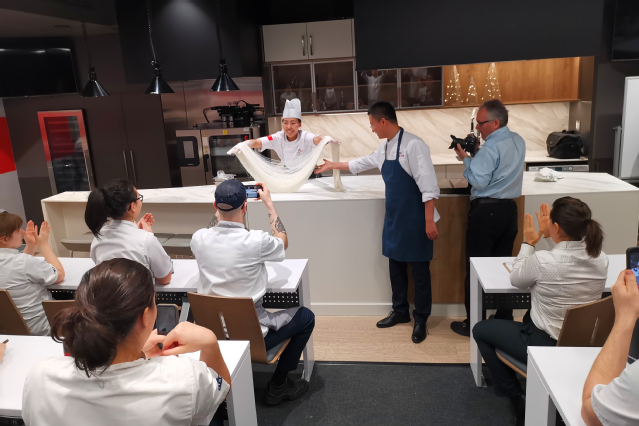 12月4日—5日,在烹饪学院院长王建明的带领下,学院展示了山东非物质文化遗产——饽饽榼子的使用及饽饽的制作,举行了“beat365中国官网——山东非物质文化遗产传播中心”的挂牌仪式。烹饪学院专业教师王珊珊、李军、江云涛向ITHQ学院师生展示了中式面点的制作,与师生一起制作了中西融合的宴席。