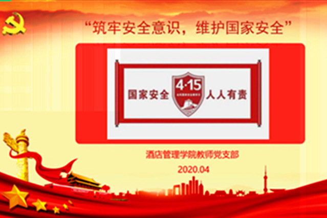 本网讯(酒店管理学院 韩宝真)4月13日,酒店管理学院开展了“筑牢安全意识、维护国家安全”线上主题党日活动,并结合党建“匠心思政”项目,全体党员组织了一堂生动党课、进行了一次集中学习、开展了一次集中研讨,取得良好效果。
