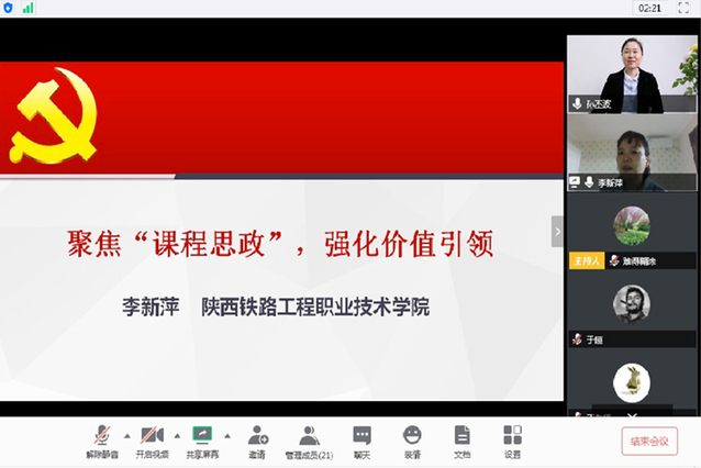 为了提升线上教学质量,发挥“课程思政”在专业课程中的引领作用,信息工程技术学院邀请陕西铁路工程职业技术学院马克思主义学院院长李新萍教授做了题为《聚焦“课程思政”,强化价值引领》的“课程思政”教学设计专题培训,阐述了“课程思政”的提出、现状和存在的问题,提出了实现小我与大我结合、挖掘思政课程资源、思政元素与专业知识形成体系等设计路径。她对13组“课程思政”教学设计方案、设计视频进行了详细点评,并给出了建设性的改进意见和建议,最终,任燕、梁磊、孙晓红等老师组获二等奖,彭霞、林永、宋志鹏、毕军涛等老师组获三等奖。