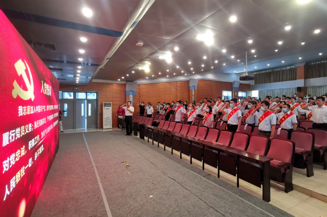 现场四位党员代表姜玲玲、赵德银、朱丽男、于森共同朗诵了配乐诗《信念永恒》,展现了中国共产党成立99年来,从无到有、由弱到强、薪火相传、生生不息的壮丽篇章。