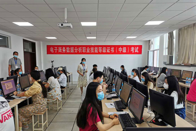 本次认证考试为全国首批考试,全国55所本科、高职、中职院校3257名学生同步开考,我院为山东省内5所报考院校之一。考试分为理论考核和实操考核两部分,采用“考培分离”模式,以考点院校交叉监考的方式进行。考试内容主要包括电子商务数据分析指标的采集与处理方案、市场数据分析、运营数据分析、产品数据分析、数据监控与报告撰写等,贯穿电子商务商品分析、视觉设计、网店销售、营销推广、客户服务、物流管理等全链条岗位,体现了对电子商务各岗位从业者的核心能力需求。通过考证培训,有效实现了课程体系与岗位需求对接、学习内容与工作内容对接、校内教学资源与企业培训资源的对接。
