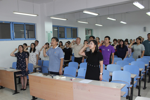 基础部主任石增业带领全体教师们庄重承诺:秉承“爱心、实力、责任”之校风,培育“勤、真、灵、雅”之英才,为全体学生的美好未来,我愿奉献全部智慧和力量,为教育事业和中华民族伟大复兴而努力奋斗。