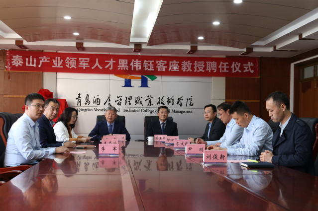 学院院长姜玉鹏为黑伟钰大师颁发聘书。李达与姜玉鹏共同为“泰山产业领军人才黑伟钰大师工作站”揭牌。党委副书记王鑫和黑伟钰共同签署聘任协议。