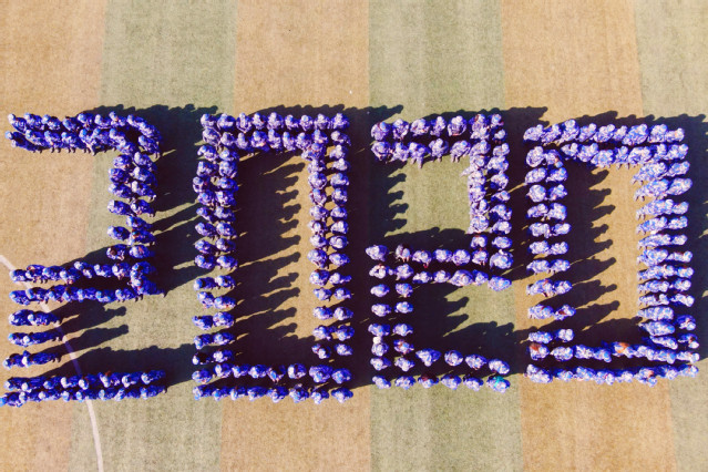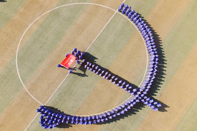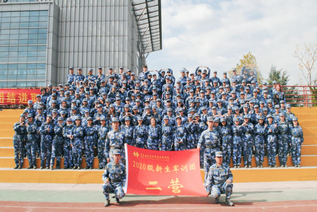 文旅学院五百余名大一新生们身着迷彩服,在学校操场整齐列队,摆出党徽、校徽、2020等大型拼图,致敬伟大祖国、致敬伟大中国共产党,给同学们内心埋下爱国、爱党、爱校的种子。同学们精神状态饱满、军姿挺拔、眼神坚定,展示青春的力量和军训的成果,增进了同学们的友谊和团结,成为九水东路599号的一道靓丽风景线。
