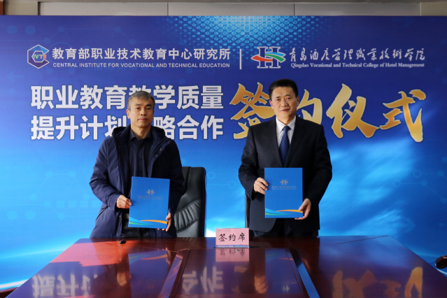 学院院长姜玉鹏代表学院与教育部职业技术教育中心研究所教学室主任刘义国共同签署战略合作协议,开启了职业教育教学质量提升计划新篇章。