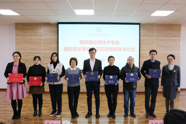 启动仪式上,武艳丽分别与国际交流与合作处处长周莉、酒店工程学院副院长张勇和信息工程技术学院副院长衣文娟为国际范式专业建设、工程造价专业和物联网应用技术专业国际范式专业建设进行了揭牌仪。