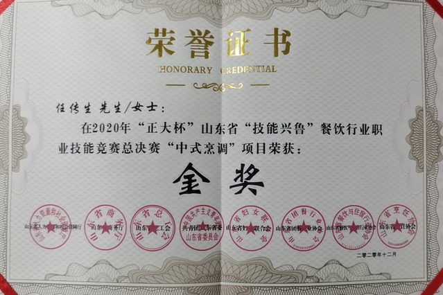 本网讯(烹饪学院 李军)近日,2020年“正大杯”山东省“技能兴鲁”餐饮行业职业技能大赛总决赛成绩公布,学院教师任传生、王庆泉两位老师获得“中式烹调”金奖。