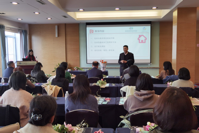本网讯(科研发展处 魏有广)3月5日,青岛市科协近20名女性工作者在青岛市科协副主席秦云鹏的带领下,来我院参加茶艺、花艺培训活动。