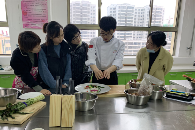 此次帮扶重点围绕专业体系构建、专业知识和技能培训、技能大赛指导等方面开展。王庆泉结合技能大赛要求,从专业理论测试、中餐热菜、冷拼与食雕、中西餐面点四个大项进行了系统解读和培训。在操作环节,王庆泉将中国传统文化的精髓巧妙地融入到菜品制作全过程,娴熟的刀法和对中餐菜品精巧的构思,赢得了对口帮扶院校师生的一致好评。