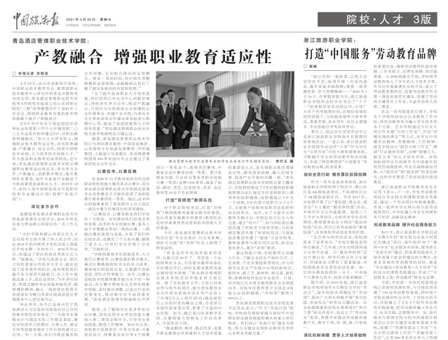 本网讯(党委宣传统战部) 4月30日,《中国旅游报》在第三版大篇幅报道学院增强职业教育适应性的经验做法,全文如下:
