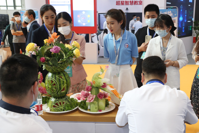 本网讯(教务处 酒店管理学院 烹饪学院 艺术学院)5月20日上午,2021年职业教育活动周全国启动仪式暨全国职业院校技能大赛开幕式在山东国际会展中心举行。省委副书记、省长李干杰,教育部党组成员、副部长孙尧出席并致辞。来自活动周联办单位及技能大赛组委会成员单位的28个部委和相关单位的代表及各地代表1200人参加启动仪式。学院作为“双高计划”建设单位,参加同期举办的首届中国国际职业教育博览会“双高计划”职业院校风采展。