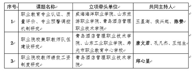 按照《教育部 山东省人民政府关于整省推进提质培优建设职业教育创新发展高地的意见》(鲁政发〔2020〕3号)及《山东省教育厅 山东省发展改革委员会关于做好部省共建国家职业教育创新发展高地理论实践研究工作的通知》(鲁教职函〔2020〕7号)要求,省教育厅面向全国招标部省共建国家职业教育创新发展高地理论实践研究课题,经单位申报、专家评审等环节,确定了72项课题立项,并根据工作需要对部分课题的申报单位进行了优化整合。