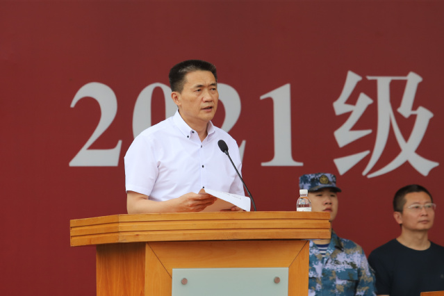 开学典礼暨军训动员大会在雄壮的国歌声中开始。院长姜玉鹏作了题为《做“请党放心、强国有我”的时代新人》的讲话,为2021级新生讲授了“开学第一课”。姜玉鹏代表学院对2021级全体新生表示热烈的欢迎,向各位学生家长、各位老师和军训教官表示衷心的感谢。他指出,今年是中国共产党成立100周年,也是“十四五”规划的开局之年。2021级新生生逢盛世,重任在肩,要肩负历史使命,坚定前进信心,努力成为德智体美劳全面发展的社会主义建设者和接班人。姜玉鹏对同学们提出三点希望和要求。第一,爱国是最朴素的情感。要胸怀“国之大者”,增强做中国人的志气、骨气、底气,不负时代,不负韶华,做敢于有梦、勇于追梦、勤于圆梦的当代大学生,做理想远大、品德高尚、敢于担当的时代好青年。第二,热爱是最温暖的光芒。要以热爱、热情学好专业课程,诠释“技能:让生活更美好”的真谛,尽快实现角色转变,找准个人定位,融入大学生活,成为全面发展的新时代大学生。第三,勤奋是最实在的努力。要牢记“勤、真、灵、雅”的校训,弘扬“爱心、实力、责任”的校风,勤于学习、敏于求知,让勤奋学习成为远航的动力,让增长本领成为搏击的能量,在奋斗中实现人生价值。
