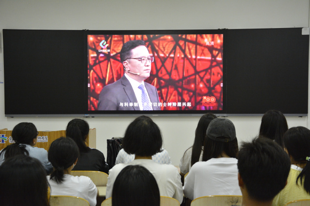 本网讯(党委宣传统战部 周晓莉)为深入贯彻落实习近平总书记“七一”重要讲话精神,引导青年学生自觉践行“请党放心、强国有我”誓言,9月29日,各二级学院组织学生通过集中收看和分散学习相结合的方式观看《齐鲁大讲坛——开学第一讲》网络直播特别节目。