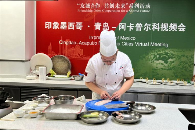 签约仪式后,学校与阿卡普尔科国际烹饪研究中心以鱼虾为食材,分别进行了中墨传统烹饪技艺展示。烹饪学院丁德龙老师制作的茄汁珊瑚鱼、百合滑虾球两道菜品,融合东西烹饪技法,展示出扎实的鲁菜烹饪技能,得到了与会嘉宾的一致好评。双方以文化交流为纽带,以美食为载体,展示了“美美与共”的友好情谊,共庆中墨建交50周年与友城合作新起点。