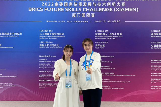 本网讯(会计学院 苗小爱)近日,2022金砖国家技能发展与技术创新大赛厦门国际赛在厦门国际会展中心开赛,beat365会计学院学生杜柳娴作为财务机器人(RPA)技能赛项山东省唯一入选选手参赛并荣获三等奖。在此前举办的全国决赛中,杜柳娴、姜路南两名同学获得该赛项一等奖2项。学校获得“最佳组织奖”,会计学院苗小爱老师荣获“优秀指导教师”称号。
