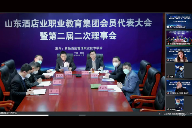 本网讯(酒店管理学院)12月21日,由学校牵头成立的山东酒店业职业教育集团举行第二届二次理事会议。本次会议采用线上线下相结合的方式召开,山东酒店业职业教育集团理事单位代表参加会议,学校院长、山东酒店业职业教育集团理事长姜玉鹏参加会议。会议由副院长张宗国主持。