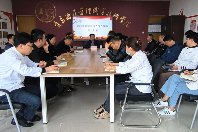 在烹饪学院,党委委员、副校长张宗国为教师们宣讲学校第二次党代会精神。他表示,要深学细悟学校第二次党代会提出的“一二三四九”思路举措,主动融入和服务学校发展大局,进一步抓学习、严作风、强业务、守纪律,牢记为党育人、为国育才初心使命,努力在推动党建引领高质量发展上走在前,在深化专业课程建设上求突破,在突出职业教育内涵发展上抓落实,在落实立德树人根本任务上亮实招,在服务行业产业创新发展上见实效,在推进产教技研深度融合上谱新篇,在促进国际交流合作发展上开新局,为实现党代会绘就的发展蓝图作出新的更大贡献。