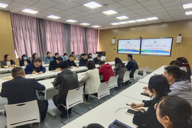 在工商管理学院,党委副书记韩西清以“精准把握形势 聚力抢抓机遇”为题,为教师们宣讲了学校第二次党代会精神。韩西清深入解读了学校第二次党代会主题,带领大家共同回顾了第一次党代会以来的工作和新时代十年的显著成绩,让在场教师代表深受鼓舞。他结合学校发展历程,详细分析了在当前形势下学校发展所面临的机遇、挑战、困难及选择,阐释了“开启学校第二次创业”的深刻内涵,明确学校未来的发展规划、主要目标及“一二三四九”的思路举措,勉励全体教师要在实干中踔厉奋发、勇毅前行,为全面开启第二次创业新征程、努力创建职业教育本科学校作出贡献,共同开创更加美好的未来。