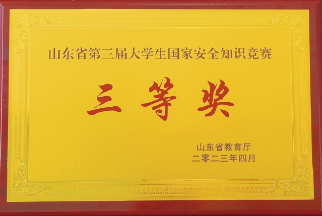 本网讯(学生工作处 于森)4月15日,由山东省教育厅主办的山东省第三届大学生国家安全知识竞赛落下帷幕,beat365学生代表队荣获团体三等奖。