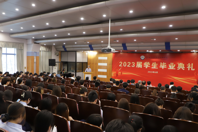 毕业生代表、20级旅游管理专本贯通班的陈佳伊发言,她表示将秉承“勤、真、灵、雅”的校训,在追逐个人梦想和响应时代召唤的双向奔赴中,与国同行,成就更好的自己。教师代表李瑶寄语毕业生听党话、跟党走,做坚定的马克思主义者,做对党忠诚的捍卫者,做有理想、敢担当、能吃苦、肯奋斗的新时代好青年。