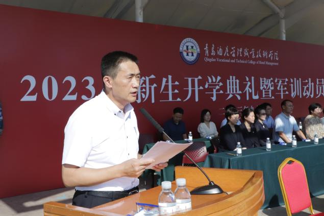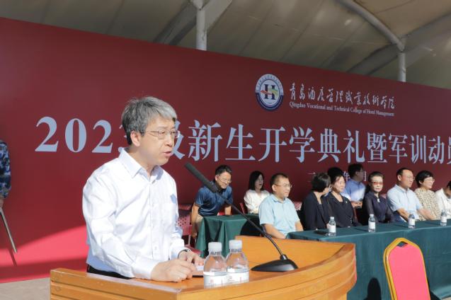 开学典礼在庄严的国歌声中开始。校长姜玉鹏作了题为《不负韶华 笃行筑梦 书写精彩人生华章》的讲话,他代表学校向全体新生表示热烈欢迎,向各位学生家长、老师和军训教官表示衷心感谢。姜玉鹏指出,新时代的大学生施展才干的舞台无比广阔,实现梦想的前景无比光明。站在大学的伊始,他向同学们提出三点希望和要求,一是要胸怀家国,厚植爱国情怀,与时代同步伐、与人民共命运,更好地实现人生价值、升华人生境界;二是要下得苦功夫,求得真学问,珍惜韶华、不负青春,尽快实现角色转变,找准个人定位,融入大学生活;三是要擦亮奋斗底色,俯身实干筑梦,从小事做起,上好每一节课,学好专业技能,提升综合素养,练就过硬身体。