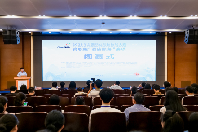 本网讯(酒店管理学院 王磊磊)9月8日上午,2023年全国职业院校技能大赛(高职组)“酒店服务”赛项在学校落下帷幕。学校副校长张宗国主持闭赛式。