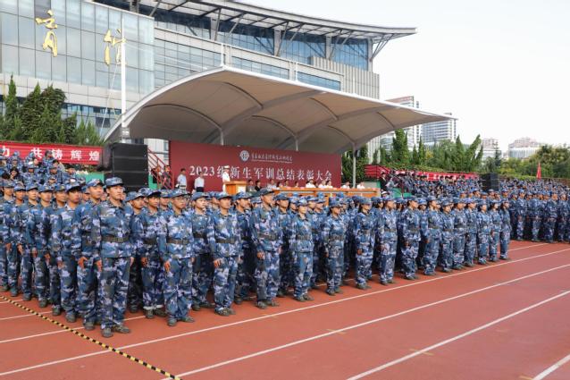 本网讯(学生工作处 朱龙)骄阳磨利剑,沙场秋点兵,9月15日上午,学校在体育场举行2023级新生军训总结表彰大会,检验和表彰新生军训成果。学校领导班子成员、承训单位领导出席活动,副校长宫恩龙主持仪式。
