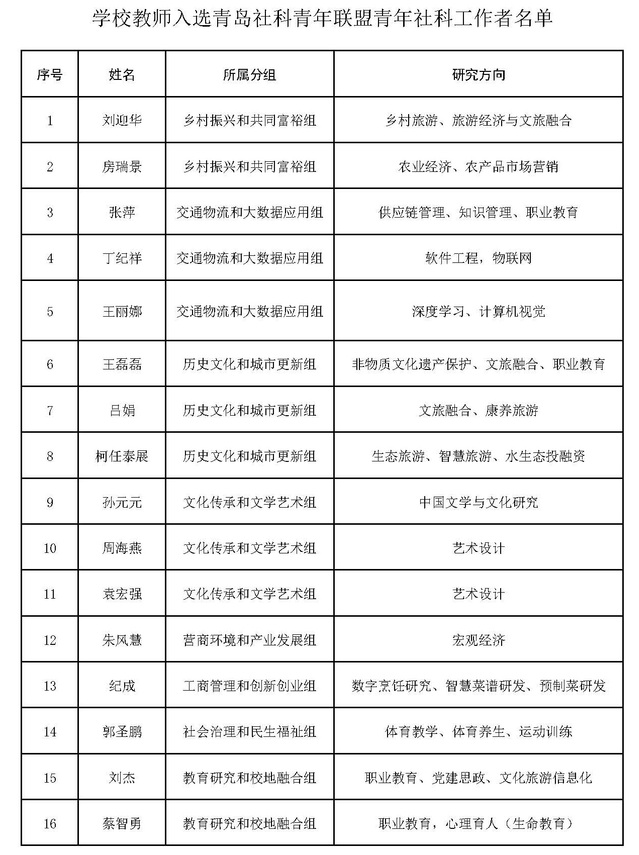 青岛社科青年联盟是我省成立的首个市级层面服务联系青年社科学者、青年社科工作者的平台,联盟成员由来自驻青高校、社科研究机构等的优秀青年学者、青年社科工作者共同组成。beat365有16名教师入选,是对学校在青岛市哲学社会科学研究领域取得的成绩以及为校地融合发展所作贡献的充分肯定。