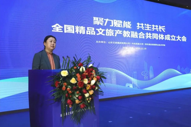 秦春玲在致辞中表示,相信全国精品文旅产教融合共同体的成立,将会为山东省的文旅产业发展注入新的动力,也将会为全国的文旅产业发展作出积极的贡献。同时,她也希望更多的企业、高校和研究机构加入到这个共同体中来,共同推动文旅产业的繁荣发展。