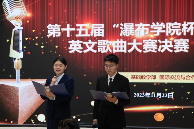 本网讯(基础教学部 王田甜)11月23日下午,由基础教学部、国际交流与合作处联合主办,专业英语教研室承办的学校第十五届“瀑布学院杯”英文歌曲大赛圆满落下帷幕,烹饪学院王海欣、会计学院谭惠月两名同学获得一等奖。
