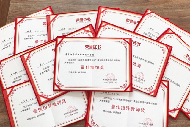 本网讯(文旅学院 王小燕)近日,由李沧区文化和旅游局主办、文旅学院与李沧区文化馆联合承办的“山东手造 李沧有礼”非遗手造文创策划大赛圆满落幕。beat365学子16件作品分别获得“最佳设计奖”“最佳新人奖”等奖项,多名教师获得“最佳指导教师奖”,学校荣获“最佳组织奖”。