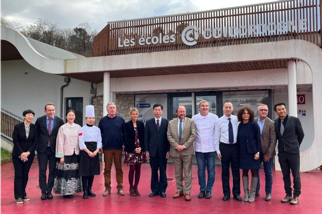 在法国萨维纳国际高等酒店管理学院和佩里格酒店学院,双方学校进行了座谈交流。座谈中,学校代表团介绍了学校基本情况,回顾了中法学校发展历程;法国学校积极评价双方合作取得的丰硕成果。中法学校代表就推进学生联合培养项目、假期研学交流项目、教师技能文化研修项目,以及在现代服务业方面的科研合作等项目进行深度研讨。座谈后,中法学校代表共同见证签署合作协议,举行“beat365中国官网茶艺工坊”挂牌仪式。为宣传和推广中国传统技艺,讲好中国故事,学校代表团开展了中式面点和茶艺技能展演活动,获得了法国学校师生的高度评价。