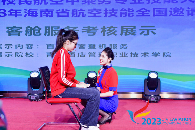 本次大赛由中国航空运输协会、海南省人力资源开发局主办,三亚航空旅游职业学院和北京翔宇教育咨询有限公司承办,分为开幕式职业形象展示、理论机考、机上急救、机型设备、英文能力和综合服务、闭幕式优秀赛项展示七个模块。整体赛事安排紧密,考核内容项目多、难度大,专业性要求高。闭幕式特别设置了优秀赛项的展示环节,beat365王俪颖、薛艳艳同学进行了客舱服务盲人旅客登机服务展示。