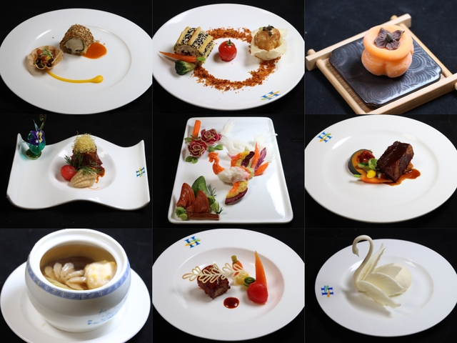 来自韩国彗田大学中国烹饪专业11名学生以小组为单位,在指导老师带领下,充分运用来校研修所学知识,结合韩国饮食文化特点,完成一桌中韩风味融合的主题宴席设计与制作。学校烹饪学院中青年教师代表,结合技能大师工作室校企合作研发最新成果,从烹调技艺、色彩搭配、口感味道、文化内涵等角度精心打磨,完成一桌中华饮食文化风味突出、中西风味有机融合的主题宴席设计与制作。中韩两国师生同台竞技,集中展示了中外饮食文化精髓、人间烟火至真至味和烹饪科学艺术之美。