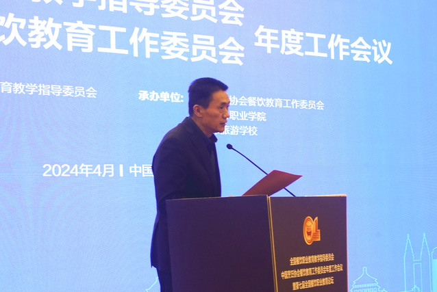 姜玉鹏代表教师发展专委会作工作汇报,并就“职业教育如何有效赋能餐饮行业发展”作主旨发言。他表示,要锚定餐饮行业需求,提升餐饮职业教育适应性;要深化产教融合建设,提升餐饮职业教育贡献率;要创新实践教学模式,提升餐饮人才培养实效性;要弘扬区域饮食文化,提升中华文化国际影响力;要践行绿色发展理念,提升餐饮低碳发展持续性;要强化师资队伍建设,提升餐饮职业教育软实力。教师发展专委会将整合凝聚各方力量,积极创新运作模式,推动建成“产业赋能教育、教育培养人才、人才支撑产业”产教融合循环生态链。